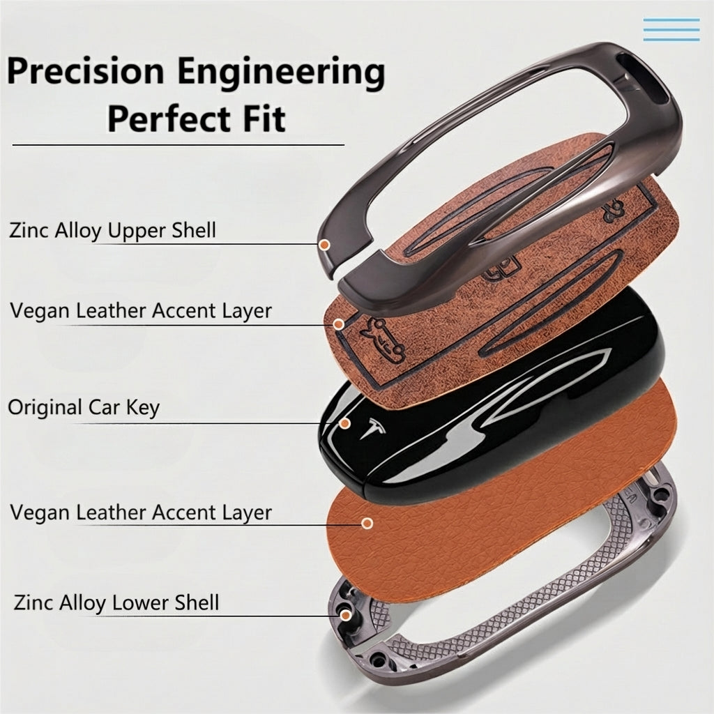 Your key fob is an expensive piece of hardware; protect it accordingly. Our "sandwich" design encapsulates your key completely. The metal frame acts as a bumper against hard drops and impacts, while the leather and TPU layers prevent scratches, scuffs, and cracks.