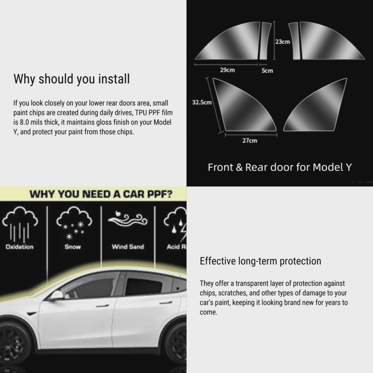 [Features] Alt arka kapılar bölgesinde önceden kesilmiş Tesla Model Y Model 3 boya koruma filmi.
