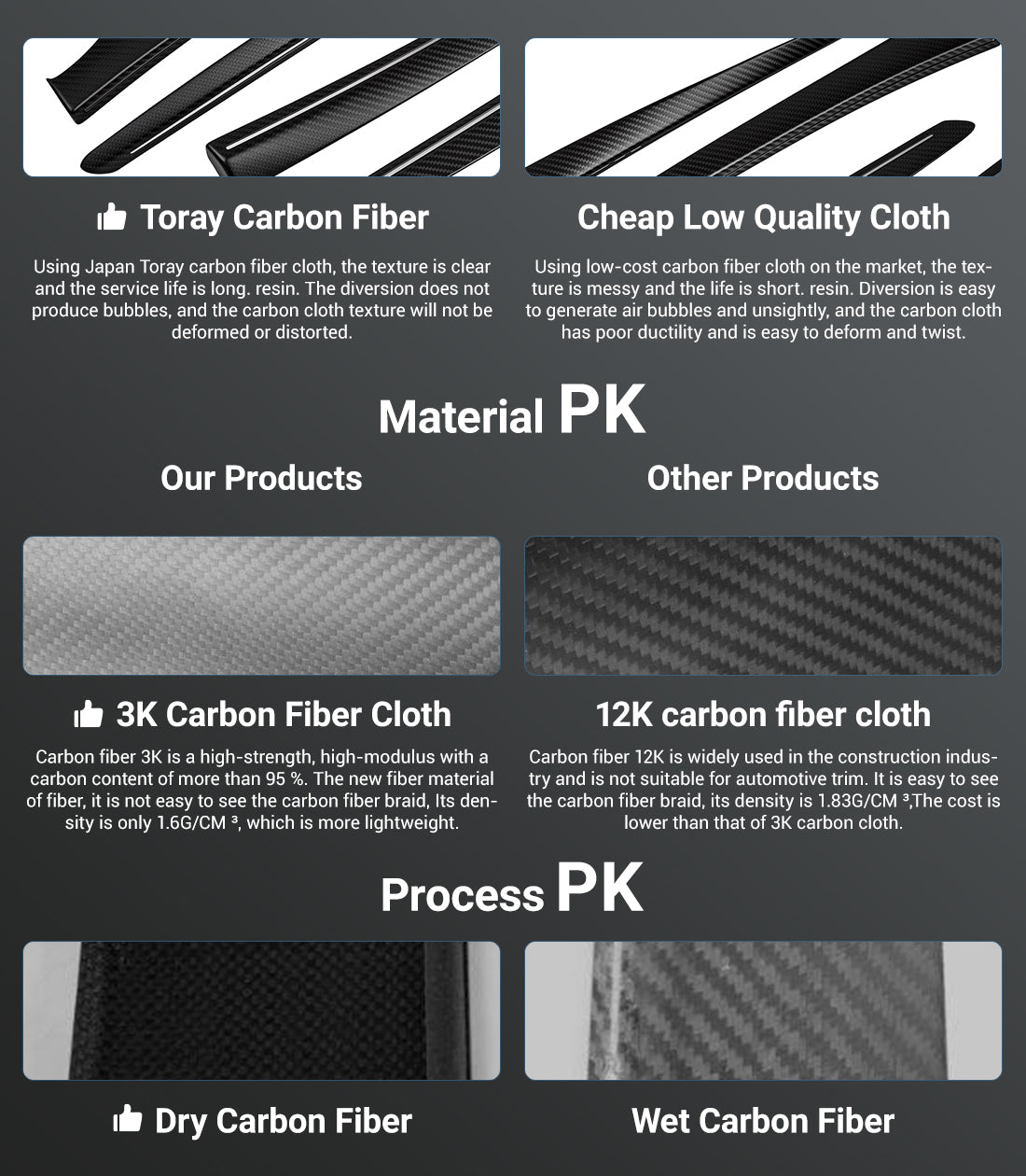 Lightweight, durable, and ultra-premium. Unlike hydro-dipped or vinyl alternatives, this is authentic dry carbon that delivers true performance aesthetics. 3D woven carbon texture inspired by performance cars. Durable & UV Resistant – Maintains its beauty look over time without yellowing, warping, or peeling.