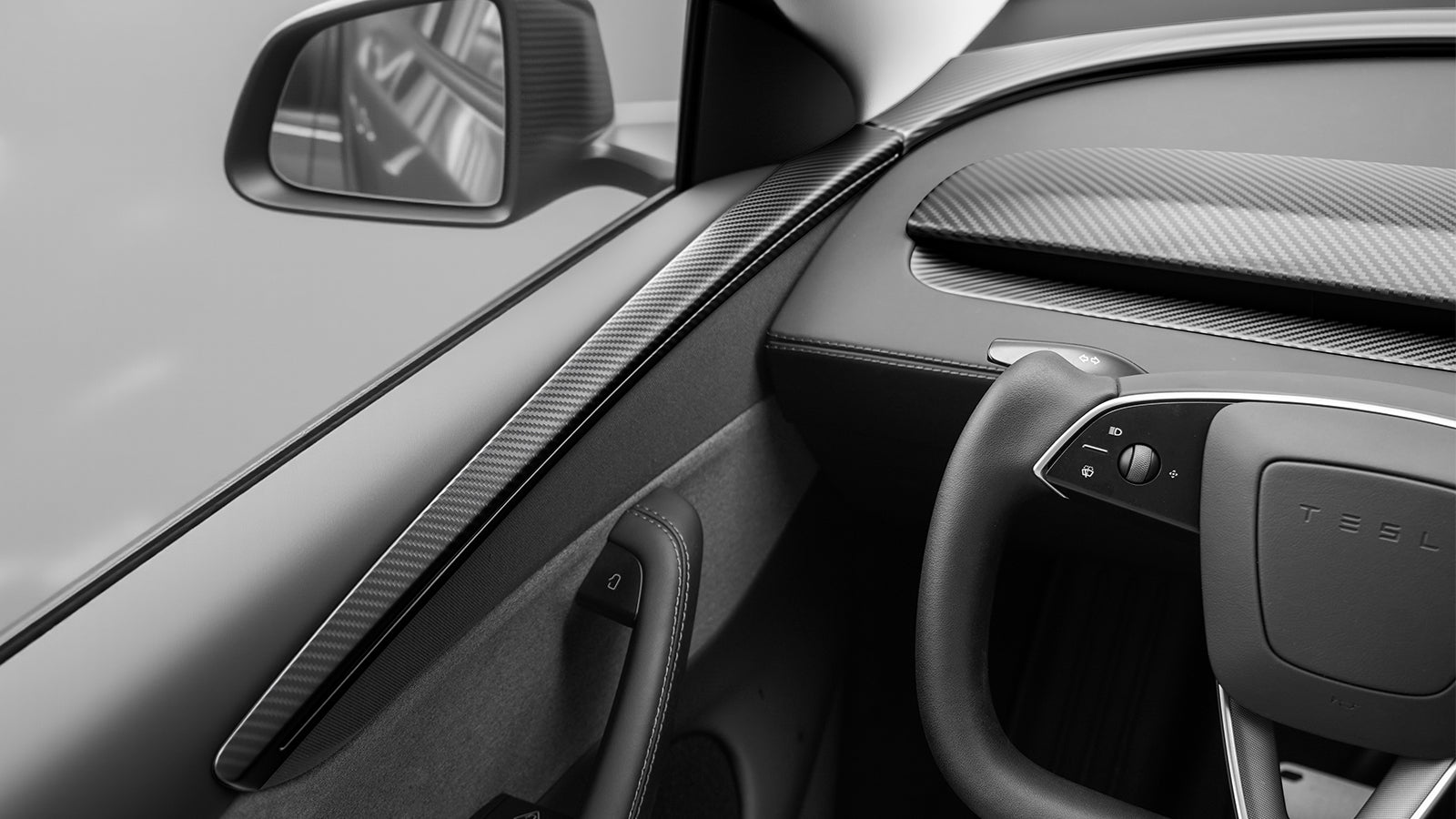 Tesla Model Y Juniper Dry Carbon Fiber Door Trim Cover — Premium Interior Upgrade