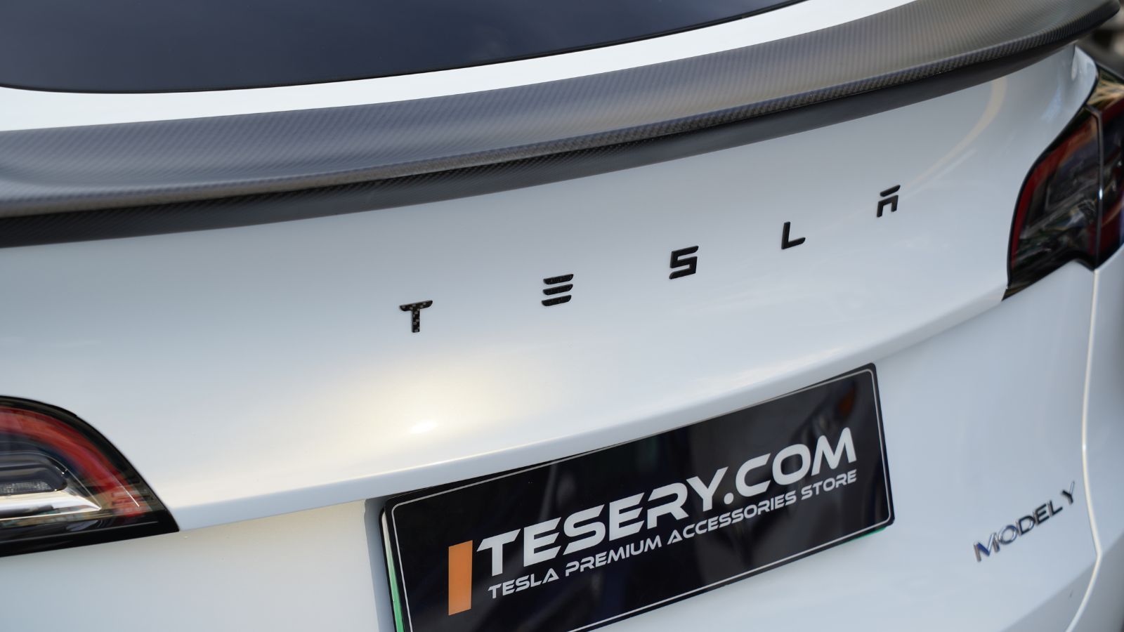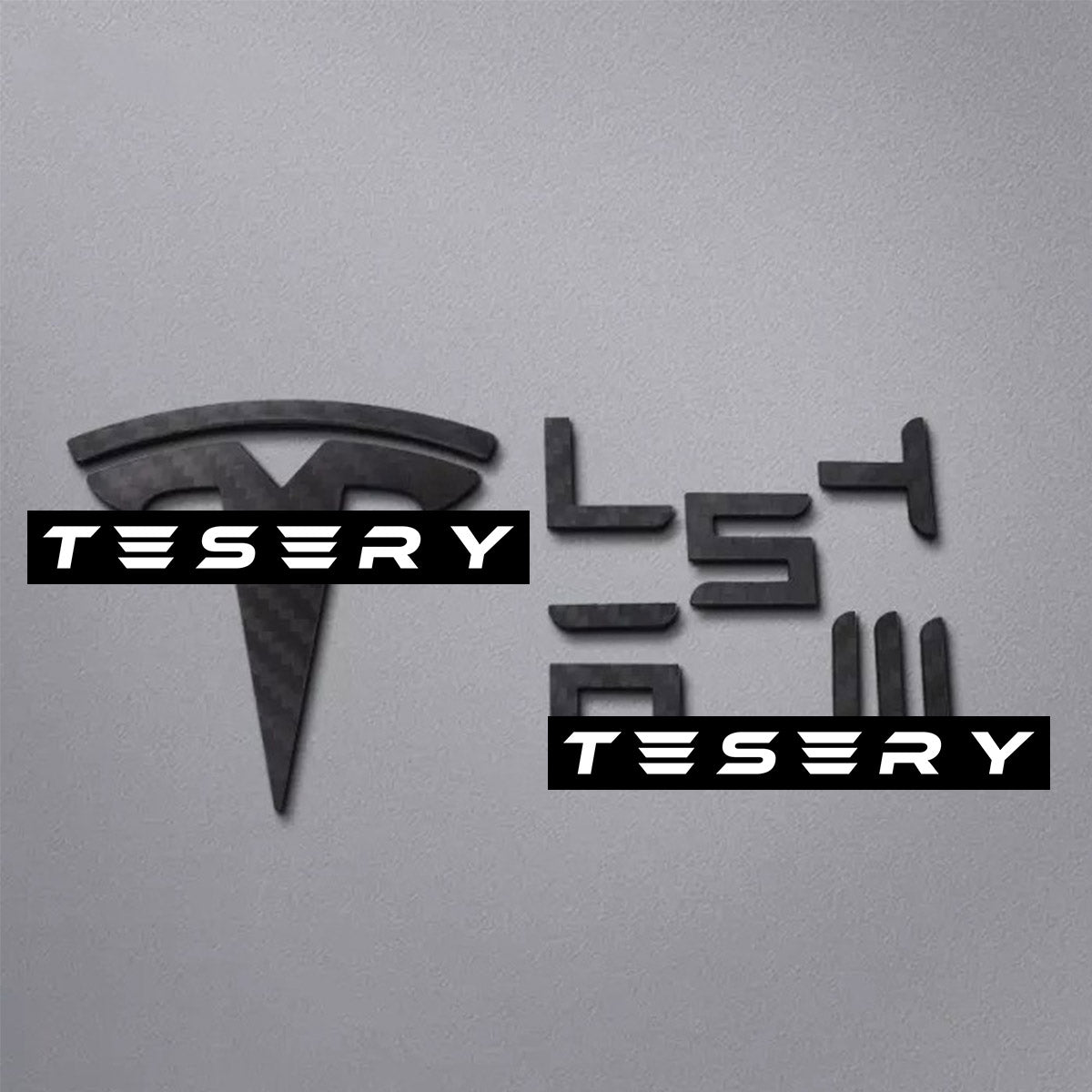 TESERY Logo Kapak Ön Rozet Arka Harfler Amblem Tesla Model 3 / Y için - Gerçek Karbon Fiber Dış Mekan