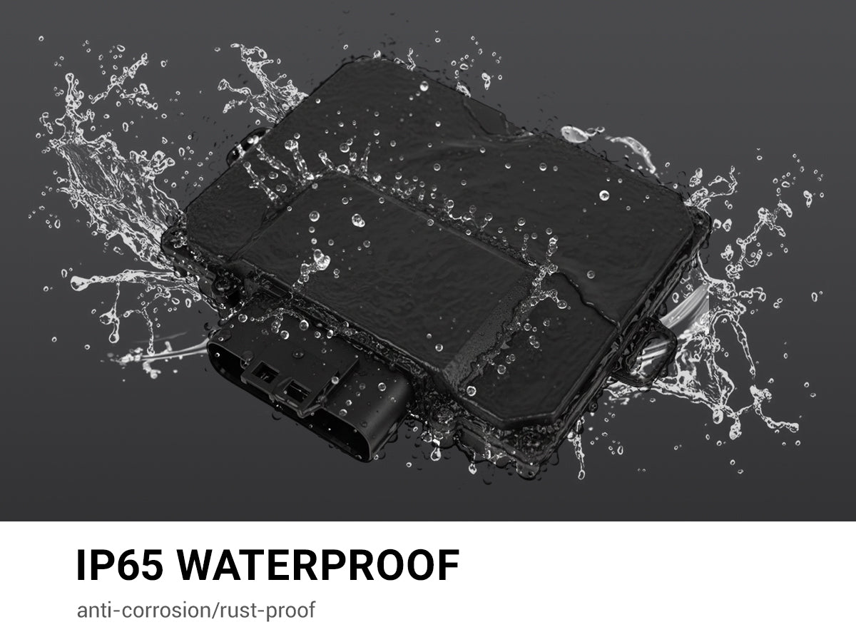 Gerçek dünya koşulları için tasarlandı. Ana kontrol kutusu ve konektörler IP65 sertifikalıdır, araba yıkama, şiddetli yağmur ve motor bölmesi nemine karşı tam koruma sağlar.