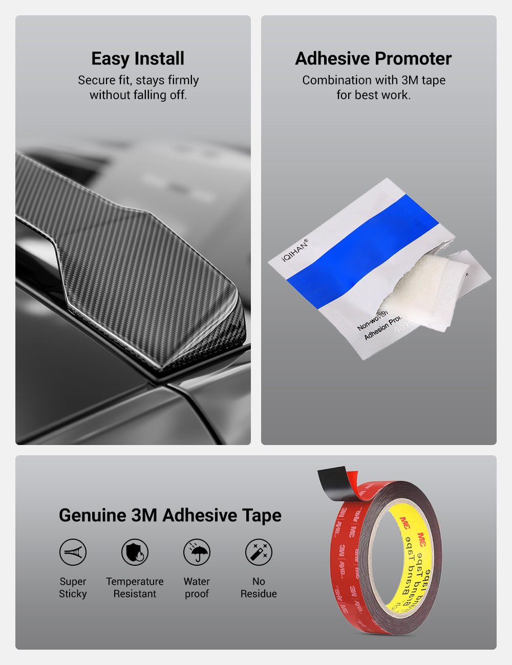 - Paket İçeriği: Karbon Fiber Tavan Spoileri x 1, Yapışma Güçlendirici Mendil x 1, Temizleme Mendili x 1