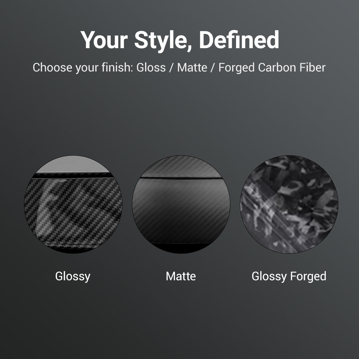 Crafted from premium dry carbon fiber, these covers are lighter, stronger, and sleeker than traditional wet carbon or ABS plastic. The weave is crisp, the surface ultra‑smooth, and the finish available in glossy, matte or forged— just like components found on supercars. This isn’t just a cosmetic upgrade; it’s a genuine performance material.
