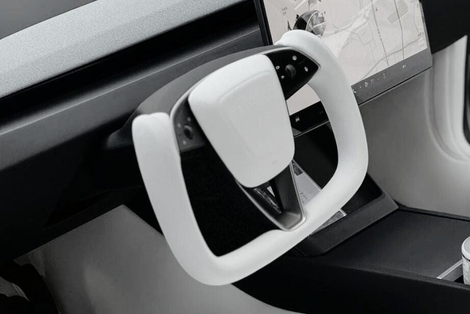 Elevate Model 3 Highland & Model Y Juniper driving experience with the innovative Yoke Plaid Heated Steering Wheel. Crafted from luxurious white leather and inspired by the yoke-style steering wheels found in the Model X and Model S Plaid, this premium addition is designed to add both style and comfort to your car's interior.